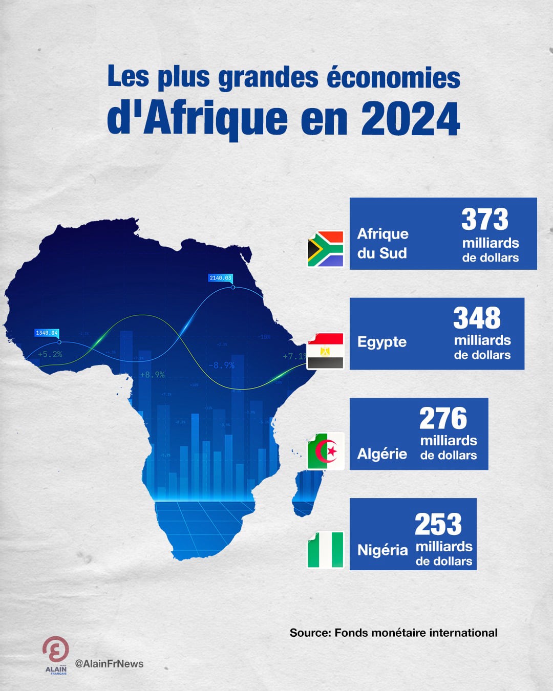 In 2024, the African economic landscape has undergone some notable changes, with several countries standing out for the size of their gross domestic product (GDP) and their economic growth. Here's an overview of the continent's leading economies, based on recent data: